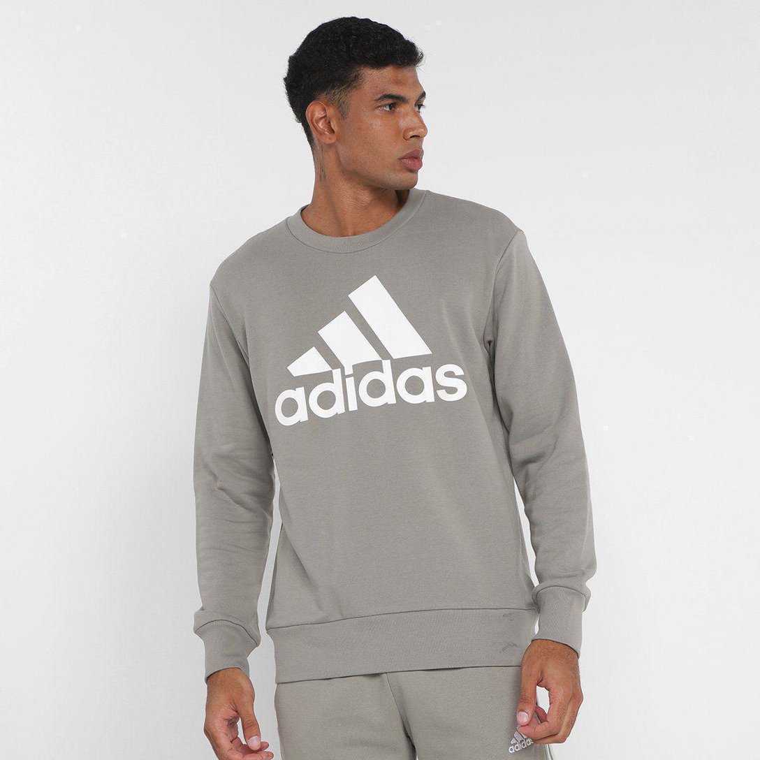 BLUSA ADIDAS LOGO SEM CAPUZ MASCULINA - Cinza Claro