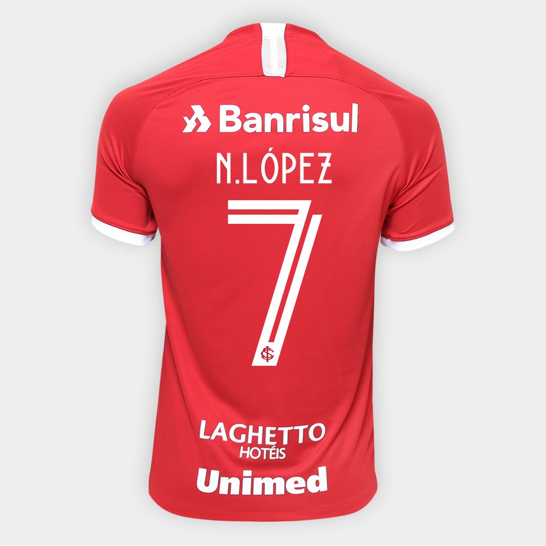 O produto "Camisa Internacional I 19/20 Nº 7 N. López - Torcedor Nike Masculina - Vermelho+Branco" acabou.