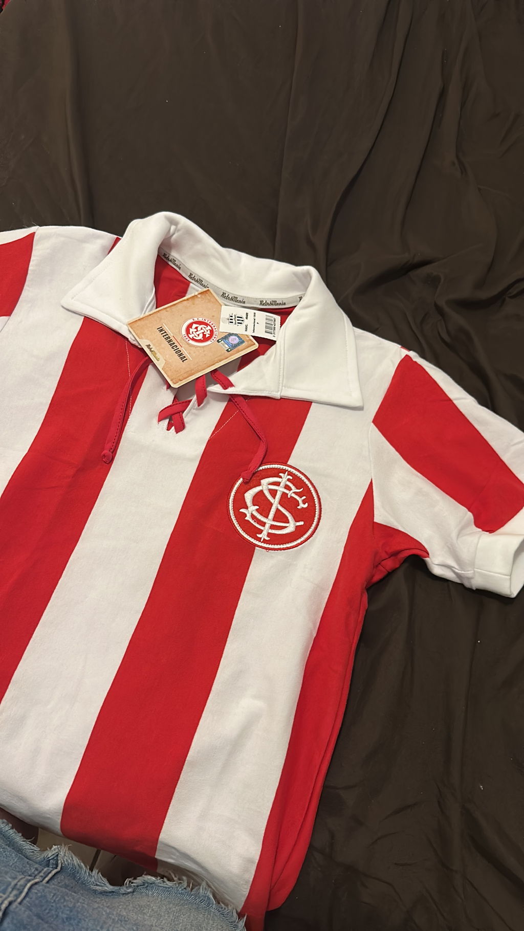 A Camiseta Masculina do Internacional 1909 não pode faltar na coleção do torcedor Colorado. Listrada e com gola Polo com amarração, essa Camisa Retrô do Inter resgata o primeiro uniforme do clube, que completa 110 anos. Comemore as glórias do Colorado e garanta a sua!