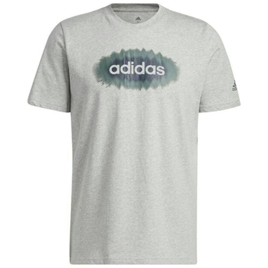 Camiseta Malha Adidas Masculina Linear Algodão Estampada - Cinza+Verde