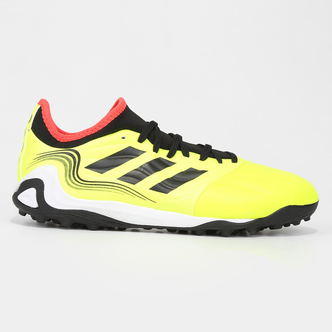 Sinta o jogo com a Chuteira Society Adidas Copa Sense 21 3! O cabedal que envolve o pé inclui couro macio na parte anterior, garantindo um controle de bola contínuo. Apoiada sobre um solado de borracha com sulcos, a entressola de EVA macia amortece cada passo em quadras cobertas de superfície lisa. Produzida parcialmente com material reciclado proveniente de resíduos de produção, como sobras de corte e descartes domésticos pós-consumo, para evitar o impacto ambiental maior da produção de conteúdo virgem.