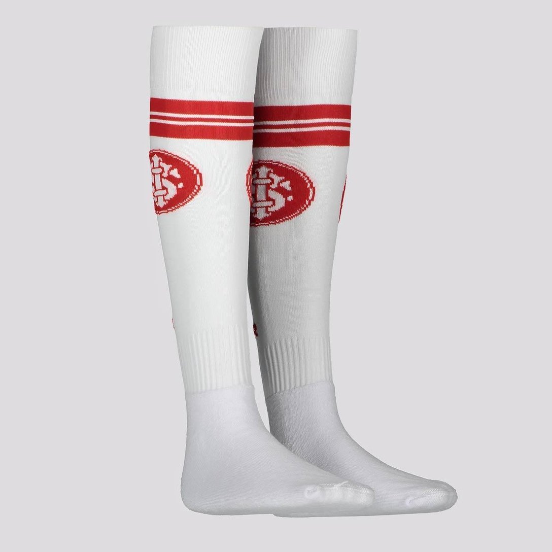 Composição: 75% Poliamida, 16% Algodão, 05% Poliéster e 04% Elastodieno Cor predominante: Branca Indicada para: Jogo Origem: Nacional Gênero: Unissex Idade: Infantil Contém: 01 par Clube: Internacional Cano: Alto Peso aproximado: 80g o par Nº 29-33